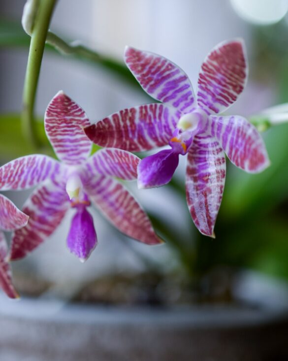 Questa phalaenopsis lueddemanniana è arrivata già con 2 steli e con un buon apparato radicale, appena arrivata l’ho rinvasata in un mix di bark, sfagno e perlite.