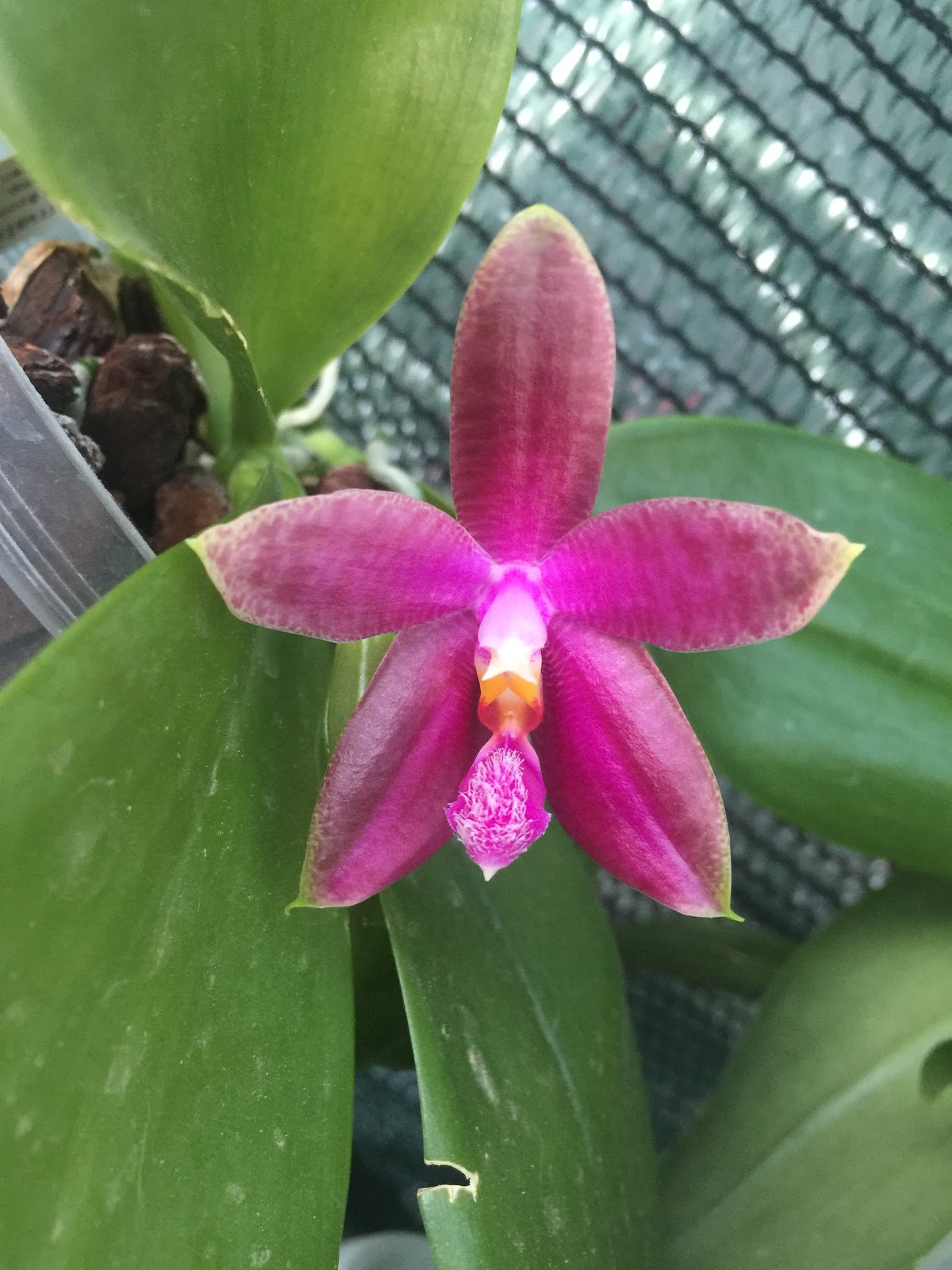 - Ha trascorso l’inverno in casa, con le altre phal. Botaniche in una struttura Ikea a ripiani con illuminazione naturale integrata con artificiale (tubi neon a luce fredda da 24w) bagnature al bisogno, umidità intorno al 70/75%.