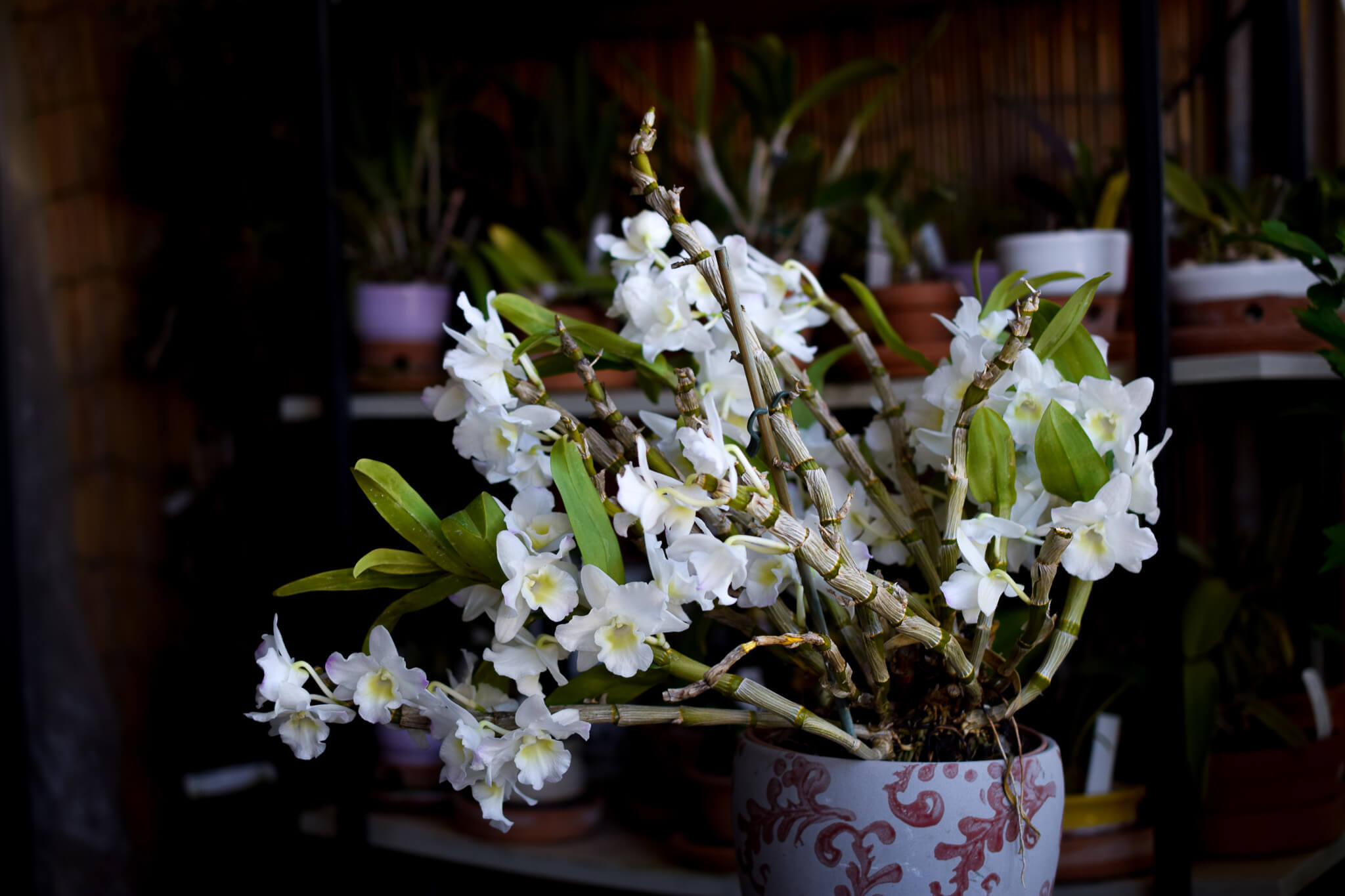 Monitoriamo le temperature minime e man mano che queste scendono lasciamo sempre più tempo tra una bagnatura e l’altra, quando ci avviciniamo ai 14° sospendiamo le concimazioni e lasciamo le piante più asciutte possibile, giunti a 10° bagniamo soltanto se le canne, foglie o pseudobulbi appaiono “rugosi” e disidratati. Le orchidee da serra intermedia potremo rientrarle quando le temperature minime saranno di 12 gradi circa, mentre quelle da serra fredda possono essere lasciate all’esterno fino a che le temperature minime non si avvicinano ai 5°C purché interrompiamo innaffiature e concimazioni appena arriviamo stabilmente ai 10 gradi di minima. Un riposo di circa 6 settimane sarà sufficiente per stimolare la loro fioritura.